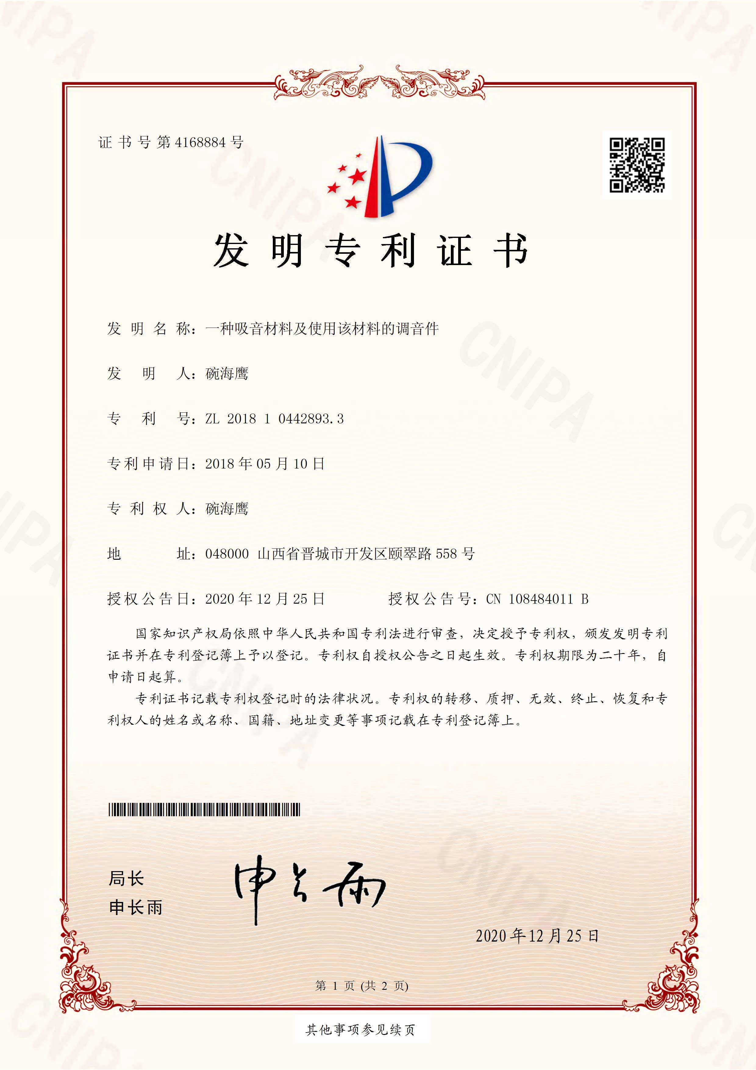 一種吸音材料及使用該材料的調音件